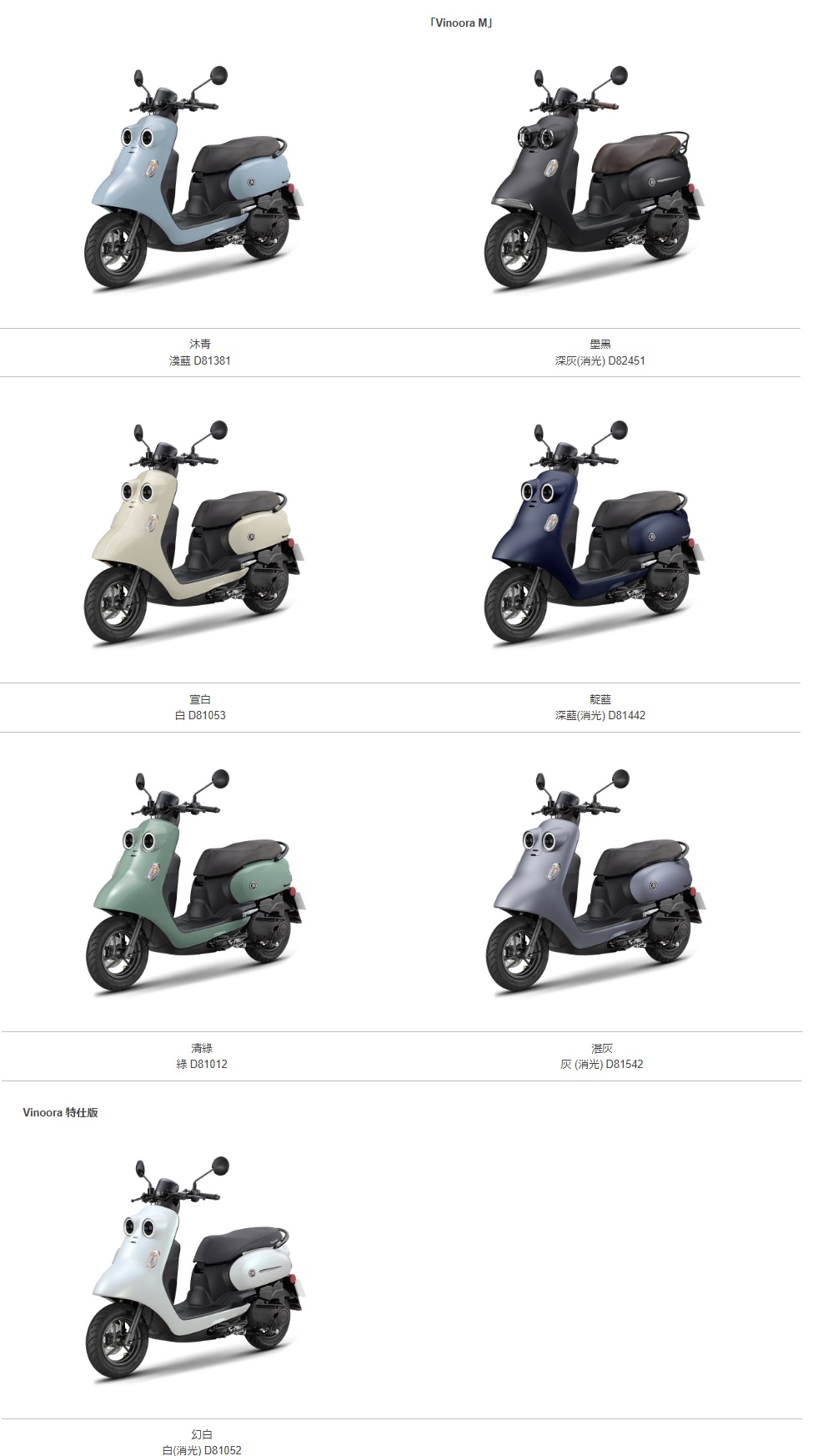 潮流新復古的「Vinoora」總共有7個車色「沐青」、「宣白」、「清綠」、「靛藍」、「湛灰」、「幻白」以及「Vinoora M」的「墨黑」供選擇。