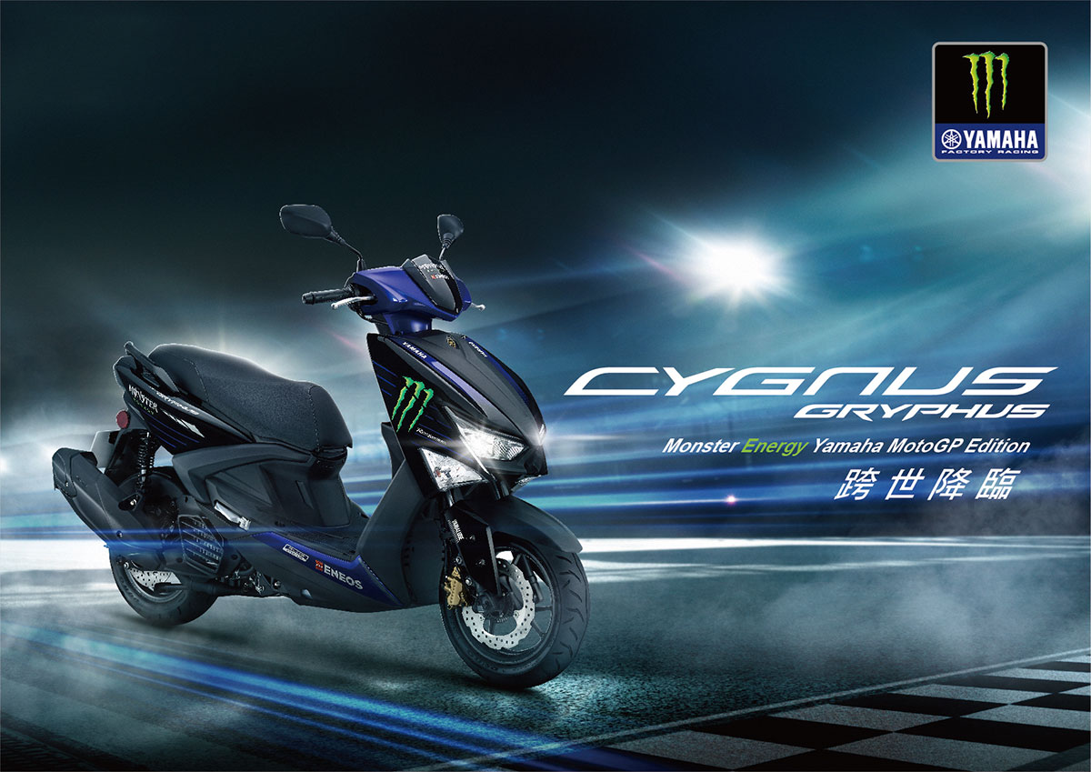 Yamaha在全新世代的「CYGNUS GRYPHUS」之上,同步推出MotoGP工廠賽車—「YZR-M1」塗裝的「CYGNUS GRYPHUS Monster Energy Yamaha MotoGP Edition」。