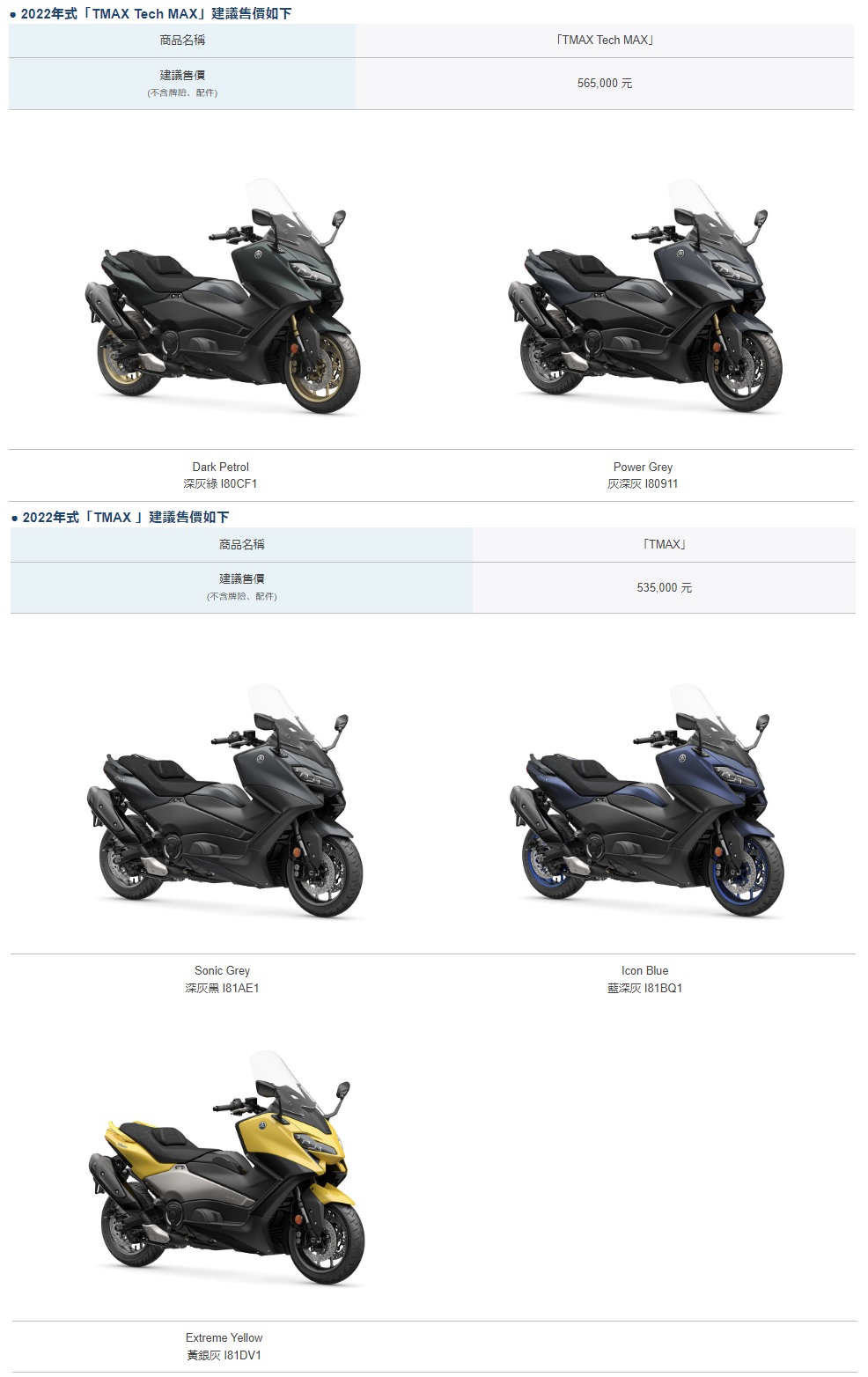 The new 2022 "TMAX Tech MAX" will be available in 2 colors schemes, and "TMAX" will be available in 3 colors, for a total of 5 models to choose from.